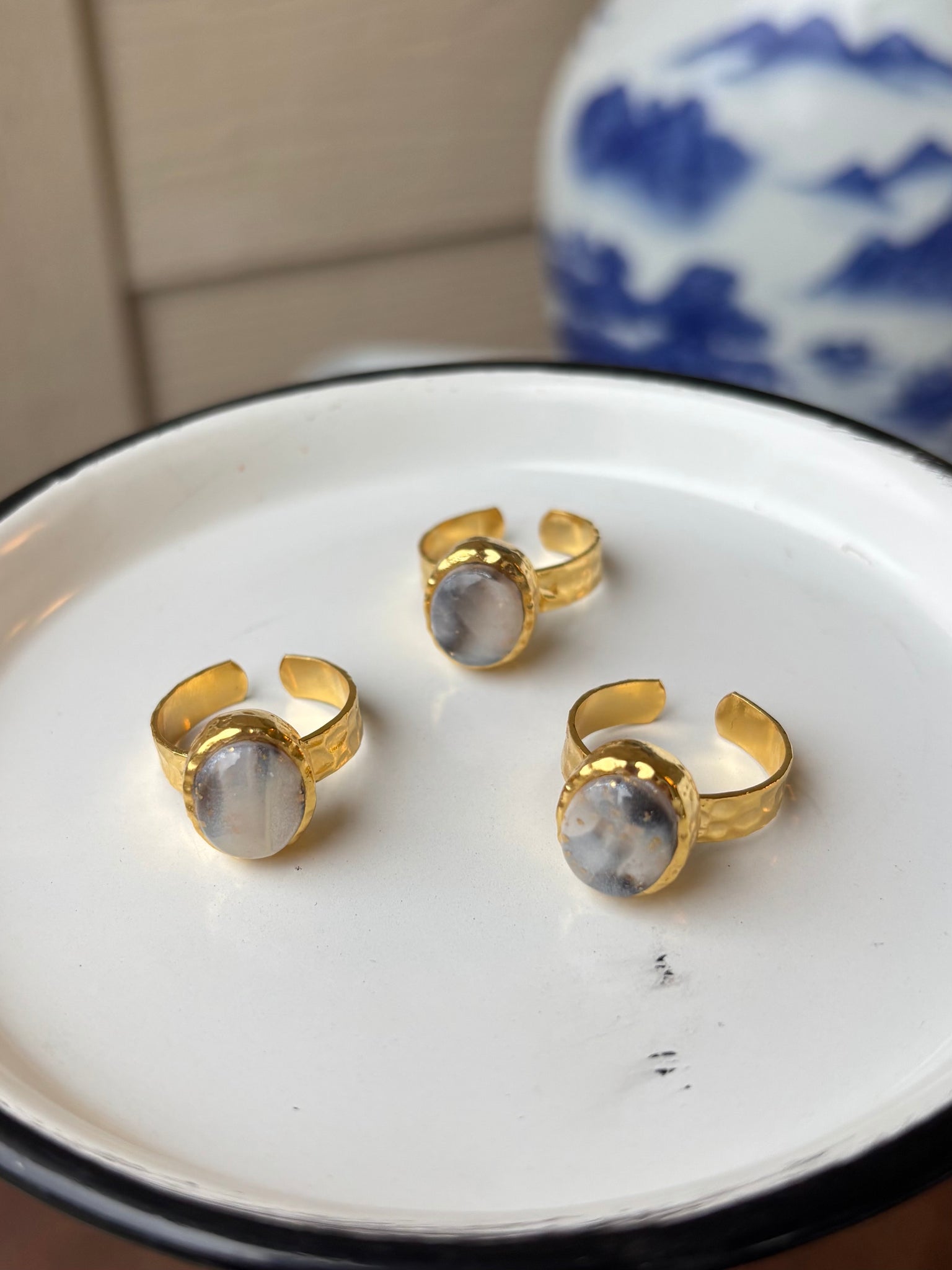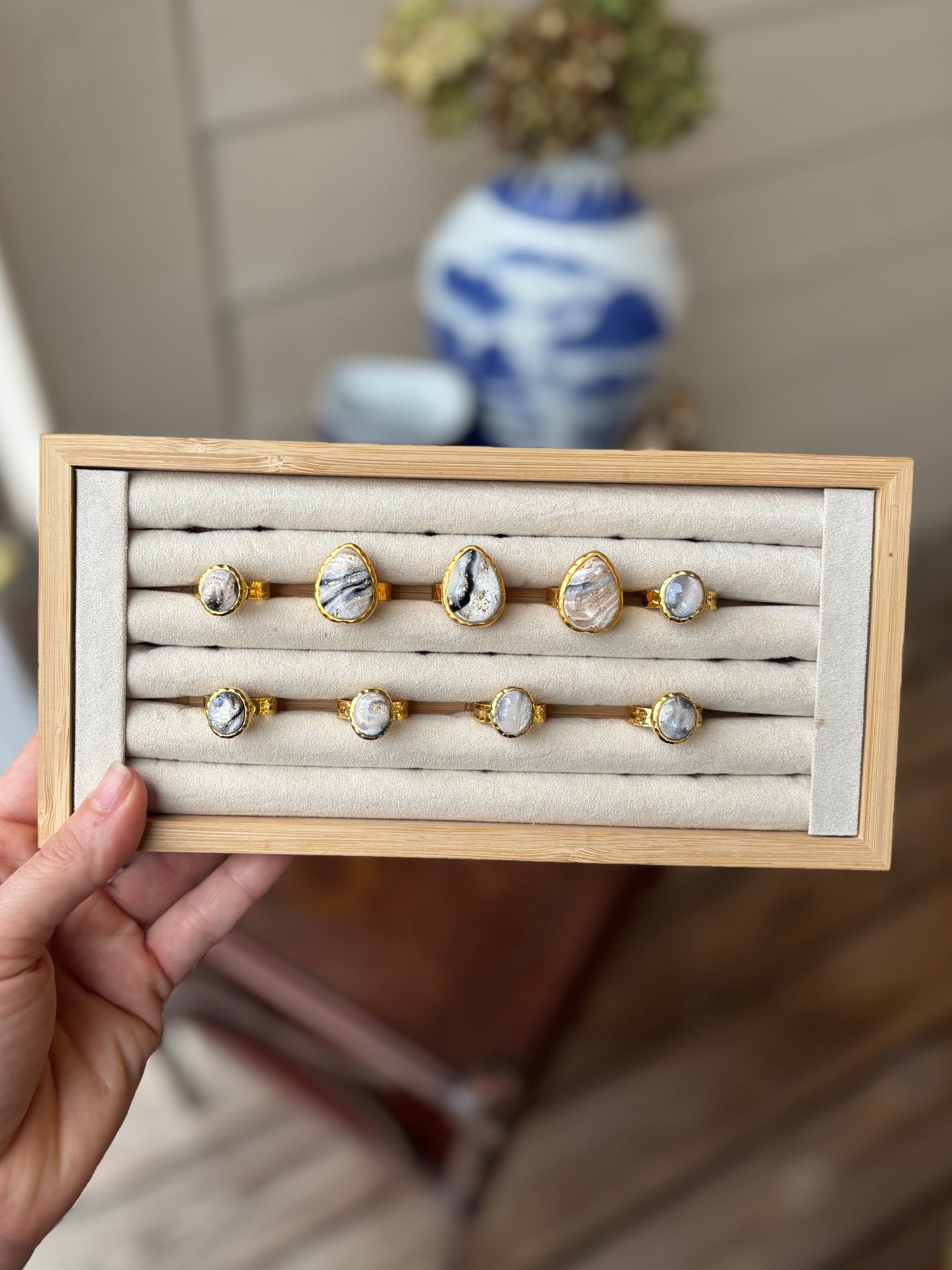 Clay & Water Statement Rings are made from polymer clay and gold-plated brass. All rings are adjustable!