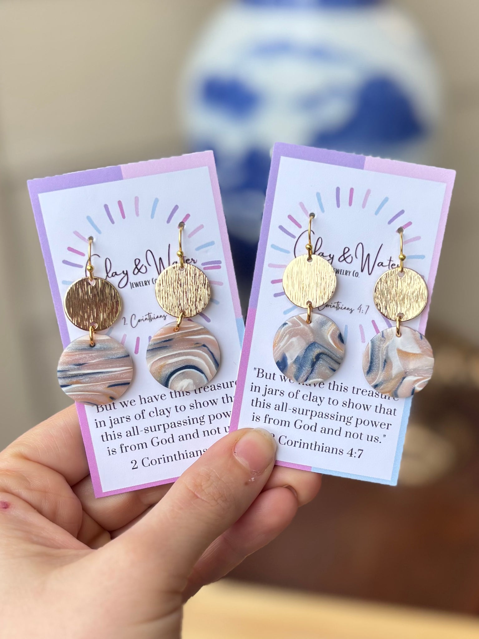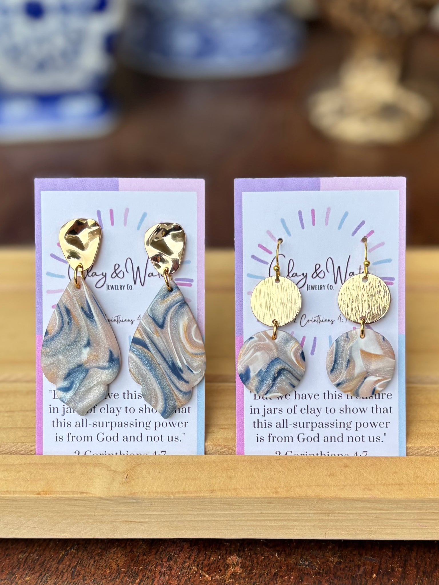 Clay & Water earrings are made from polymer clay and are extremely lightweight. All earring posts are 14k gold plated brass.