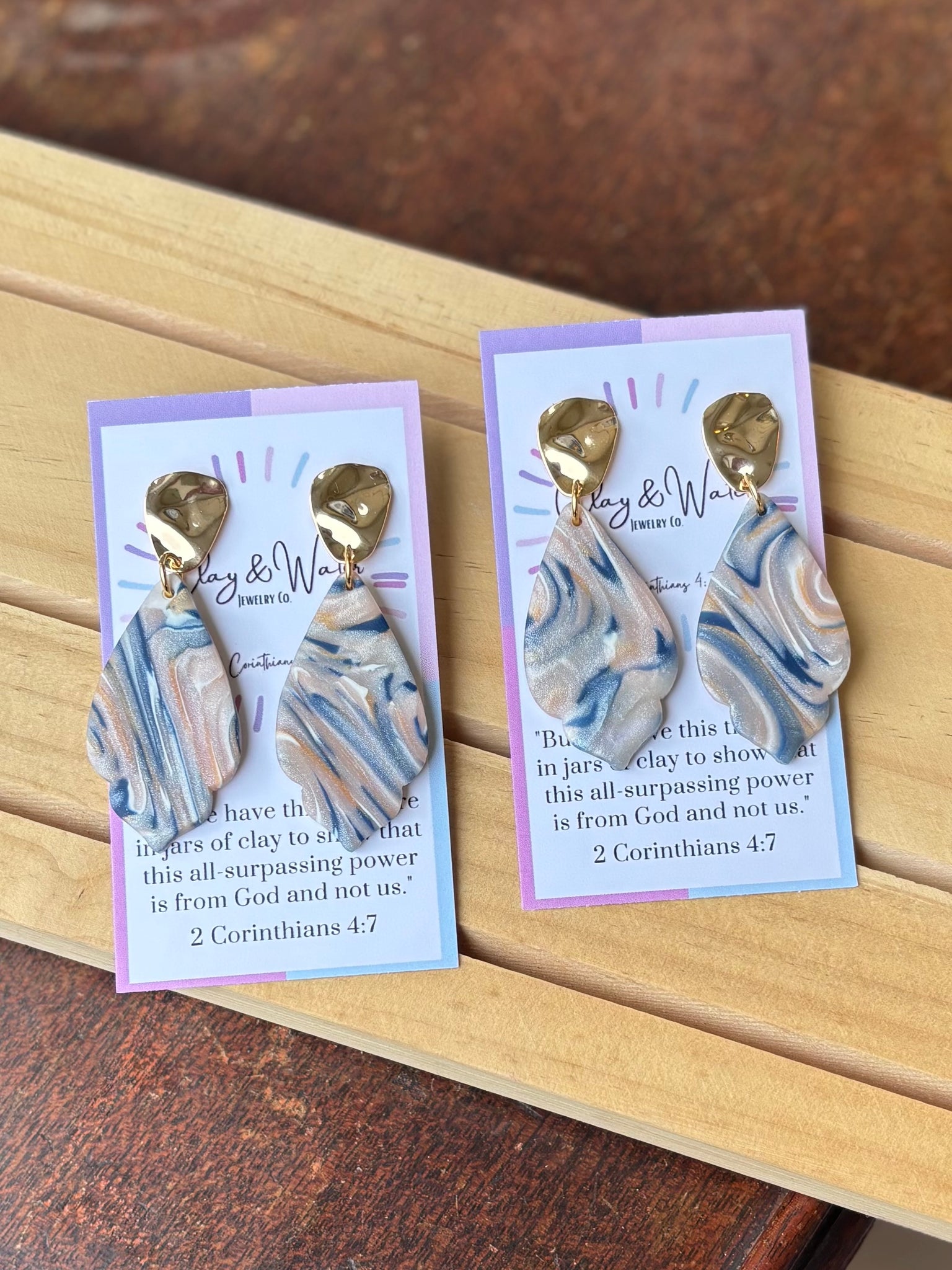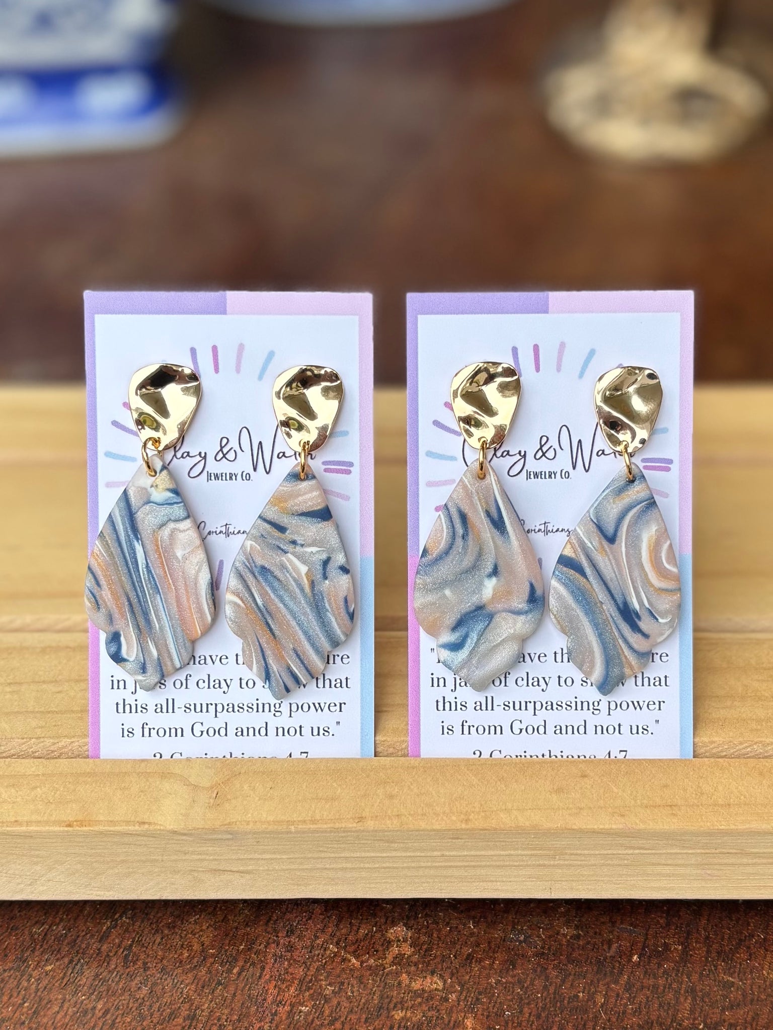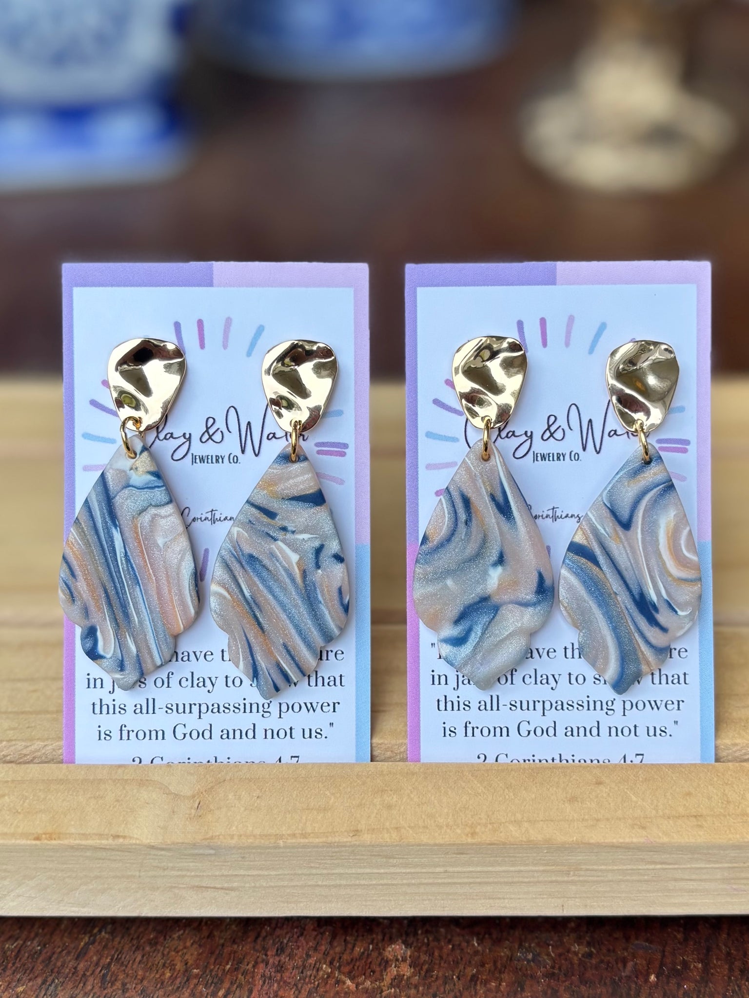 Clay & Water earrings are made from polymer clay and are extremely lightweight. All earring posts are 14k gold plated brass.
