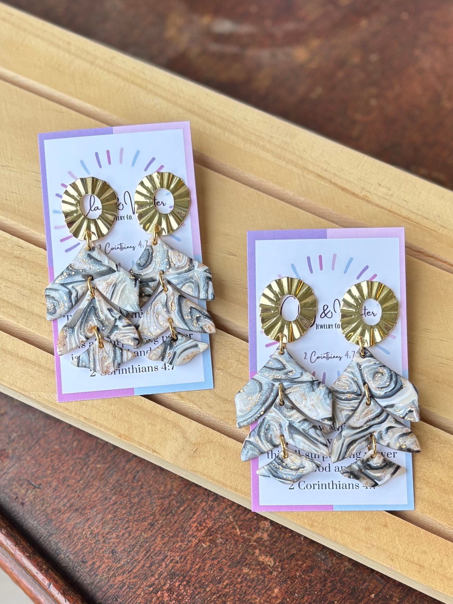 Clay & Water earrings are made from polymer clay and are extremely lightweight. All earring posts are 14k gold plated brass.
