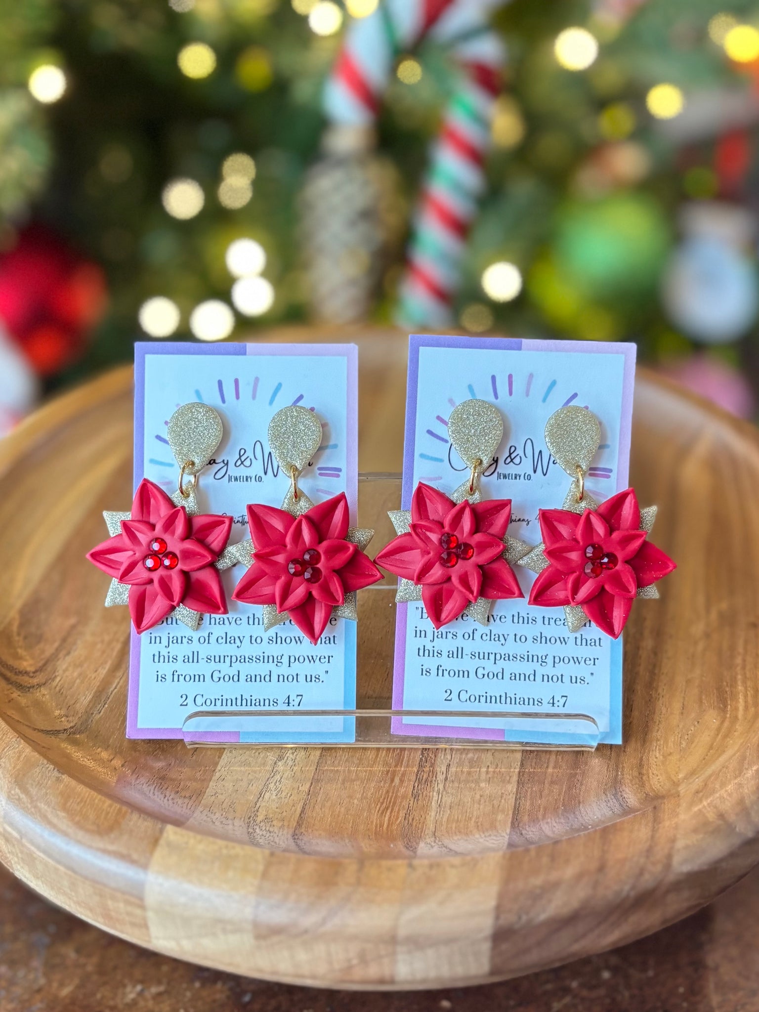 Poinsettias are a Christmas staple! My grandmother always loved red poinsettias for Christmas! Making these earrings reminds me of her every Christmas season! Each poinsettia features a crystal rhinestone.