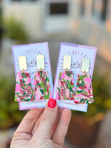 Pink Christmas Marble Mix - Rectangle & Gold Post