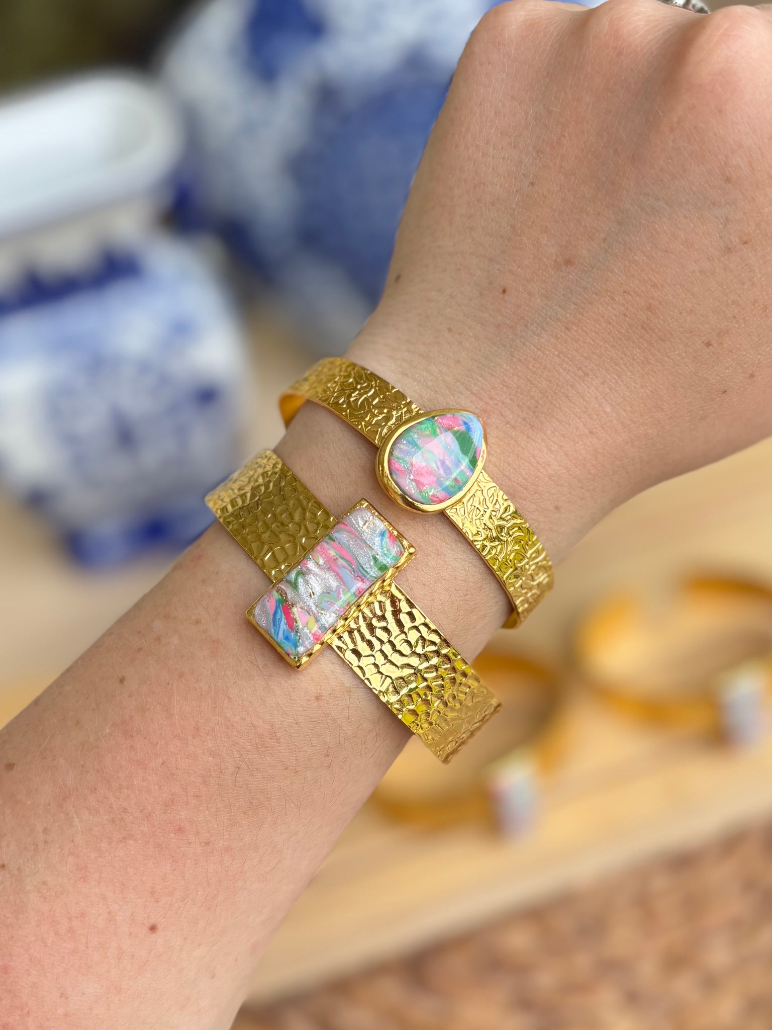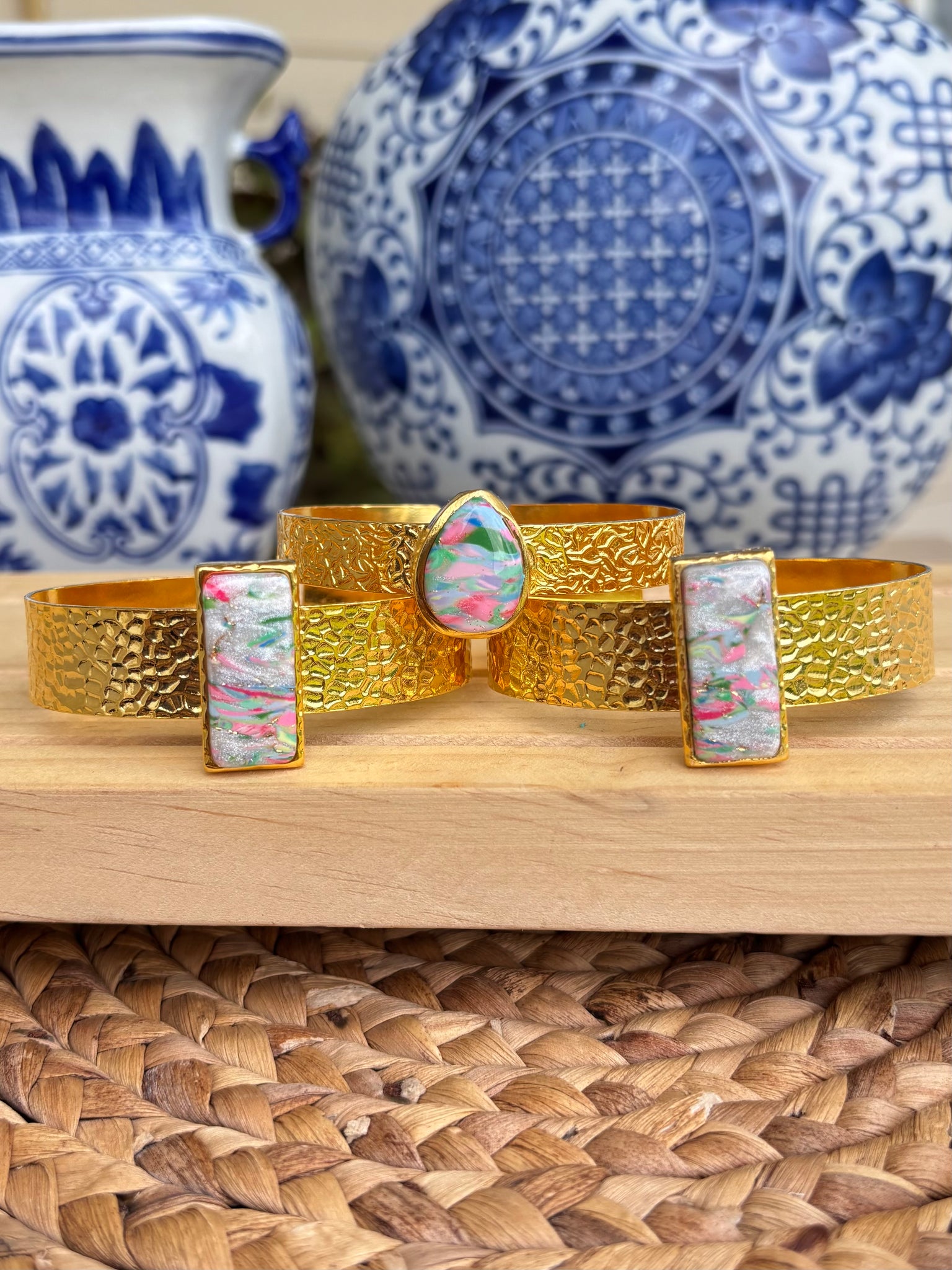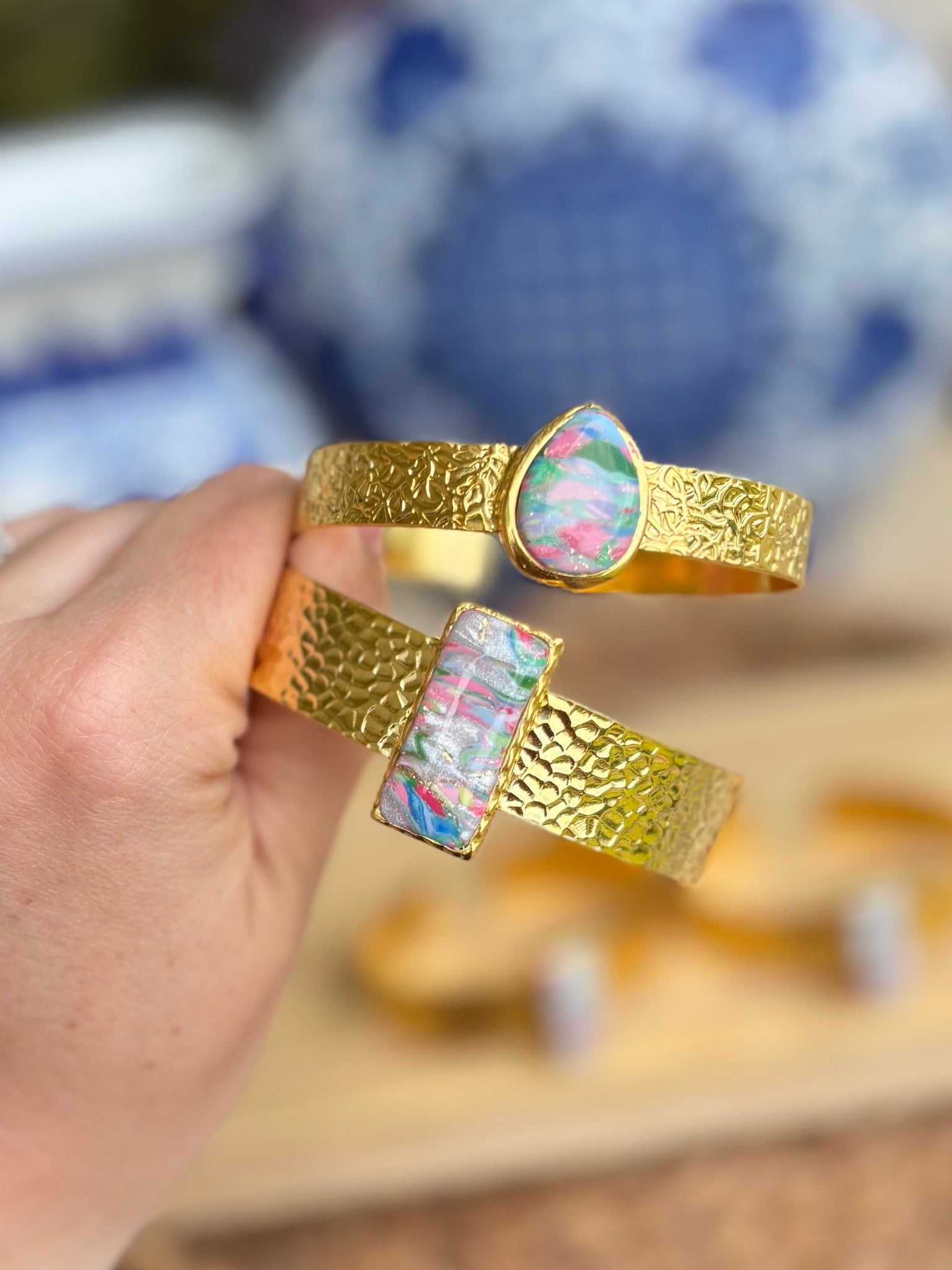 Clay & Water bangles are made from gold-plated brass and are adjustable to any size.